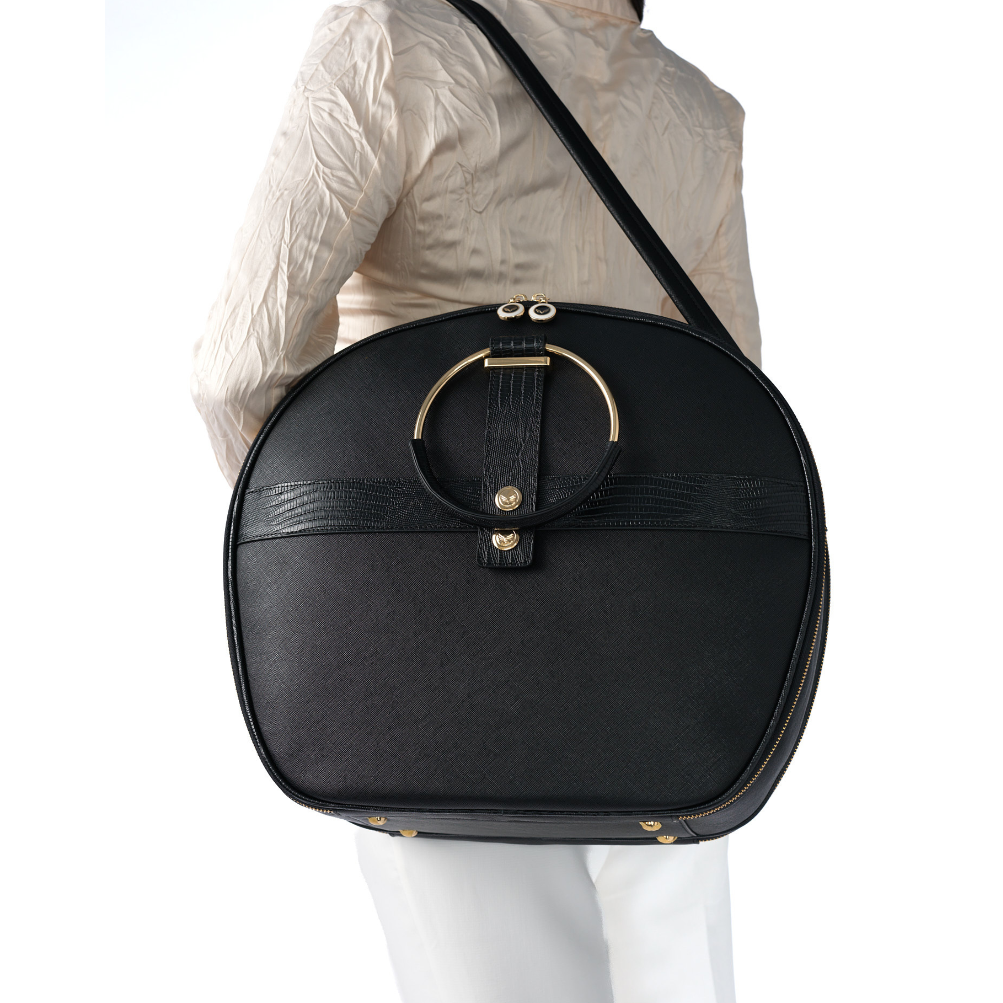 A one-of-a-kind Birdy design where jewelry meets utility. Custom metallic handles that wear like bracelets wrapped in padded, exotic-embossed leather to soften the experience without compromising style. Offering two elegant carry options, slipping effortlessly over arm or resting comfortably in hand while elevating any look.