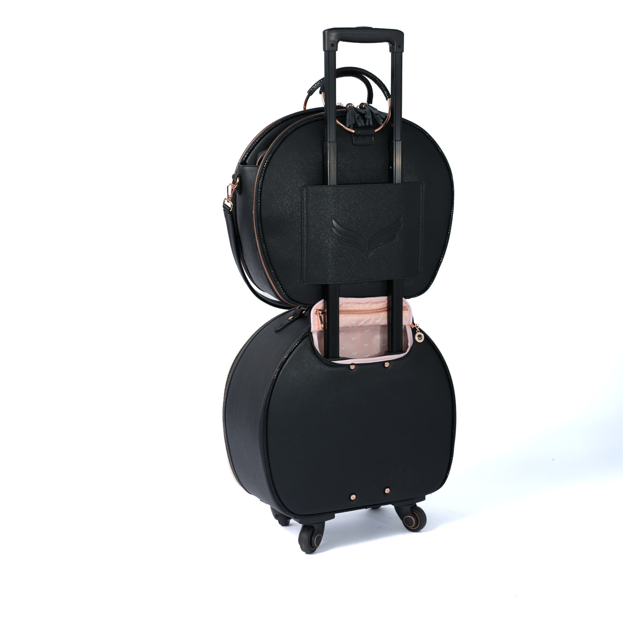 Birdy's infamous 'Signature Stacking' feature is a backside trolley sleeve designed to pair perfectly with any Birdy luggage, sliding on top to roll together as a stackable carry-on set. The Executive Birdy is an extension of the Smart Birdy Jetsetter Luggage Collection and now is our dedicated 'personal item' for airline travel.