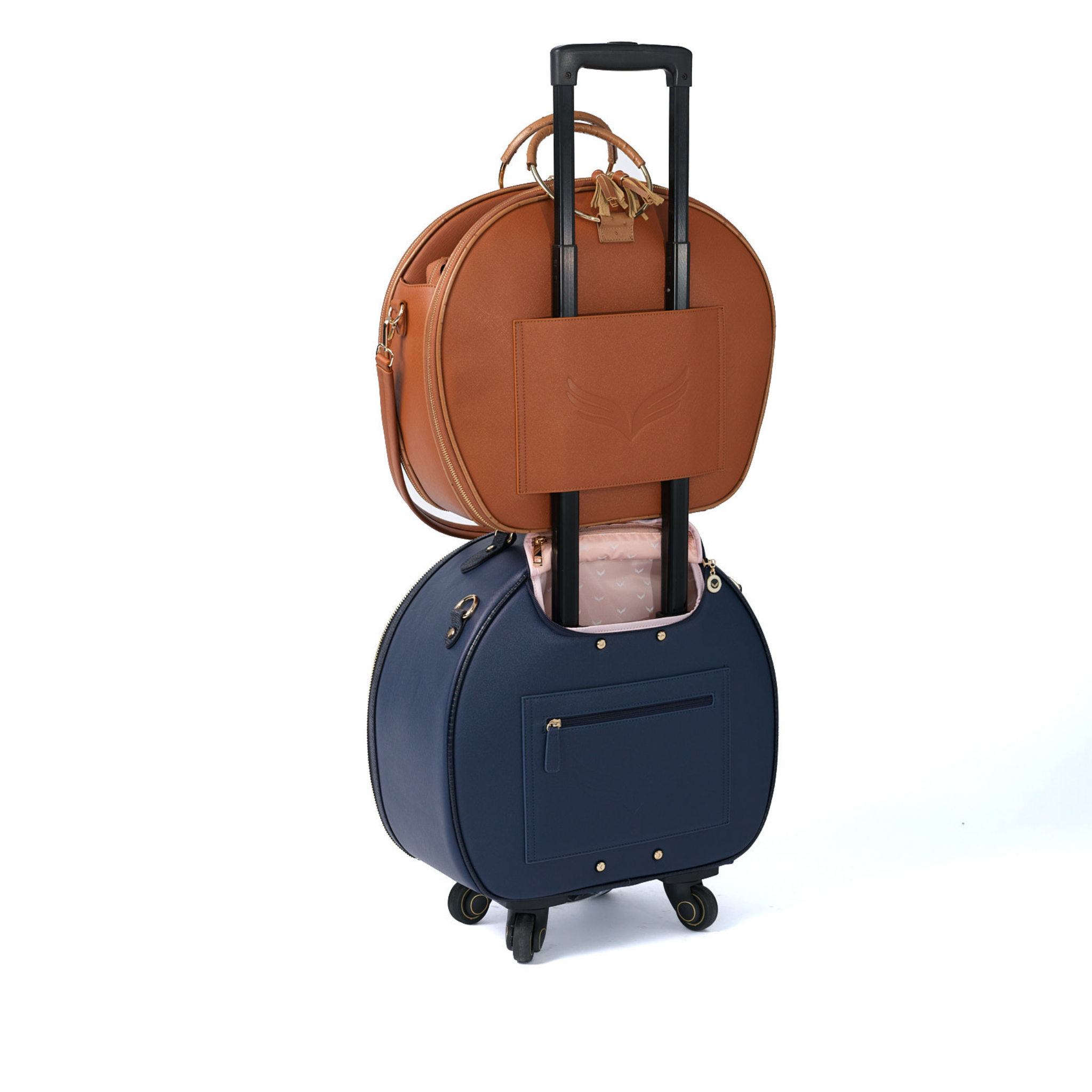 Birdy's infamous 'Signature Stacking' feature is a backside trolley sleeve designed to pair perfectly with any Birdy luggage, sliding on top to roll together as a stackable carry-on set. The Executive Birdy is an extension of the Smart Birdy Jetsetter Luggage Collection and now is our dedicated 'personal item' for airline travel.